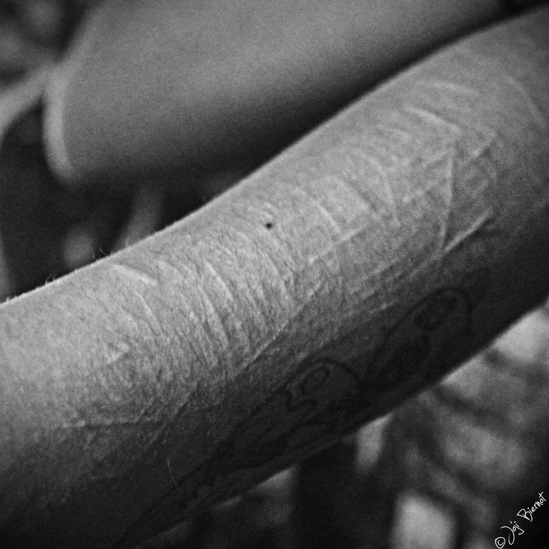 My scars represent a very dark part of my life. It started when I was 13. My life was in shambles and my stability was nonexistent. I had tried to commit suicide almost a dozen times by overdose. Every time I failed I would burrow into a pit of self hate and for many many years it was very destructive. I would stop feeling and after being put on every medication known to man, i didnt feel alive even when i knew i was. Each time it got to be too much to take I would start again, tearing chunks from my skin and bleeding it out until i couldnt feel the pain any more.